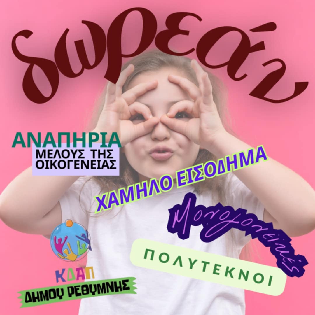 Δείτε εδώ την σχετική ανακοίνωση του δήμου Ρεθύμνης για δωρεάν φοίτηση σε δράσεις δημιουργικής απασχόλησης των παιδιών.